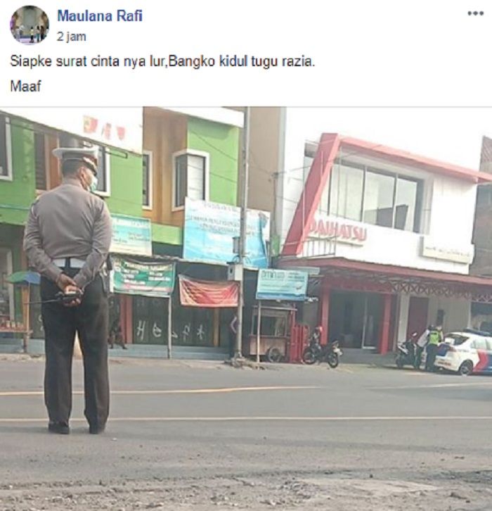 "Siapke surat cintanya lur, Bangko kidul tugu razia, maaf" tulis keterangan tersebut.