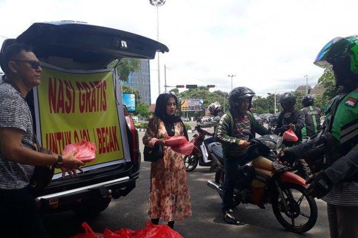 Melihat fenomena ini membuat timbul kepedulian terhadap sesama yakni H Edi Junaidi, warga kota Palembang ini membagikan 100 nasi kotak yang dibagikannya kepada para tukang ojol, becak dan lainnya yang melintas.