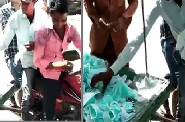 Hal ini terjadi di negara ini, 3 orang pemuda menaiki motor terlihat membeli masker dari pedagang dipinggir jalan.