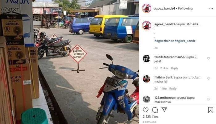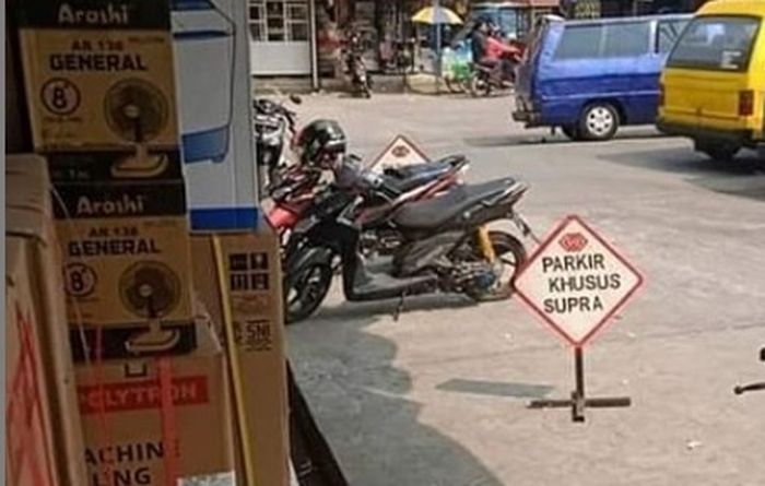Nampak tulisannya "Parkiran khusus Supra", motor bebek legendaris ini dapat hak istimewa.