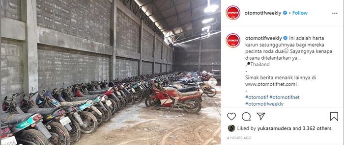 Foto gudang yang berisi harta karun ini beredar di jagad maya salah satunya Instagram @otomotifweekly (01/04/2020).