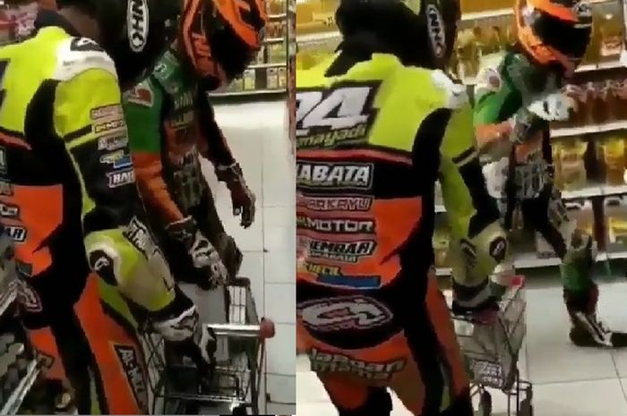 Gridmotor.id - Dijamin virus Corona kabur jauh-jauh, bayangkan 2 pria belanja pakai kostum keren yang jadi pusat perhatian pengunjung swalayan.