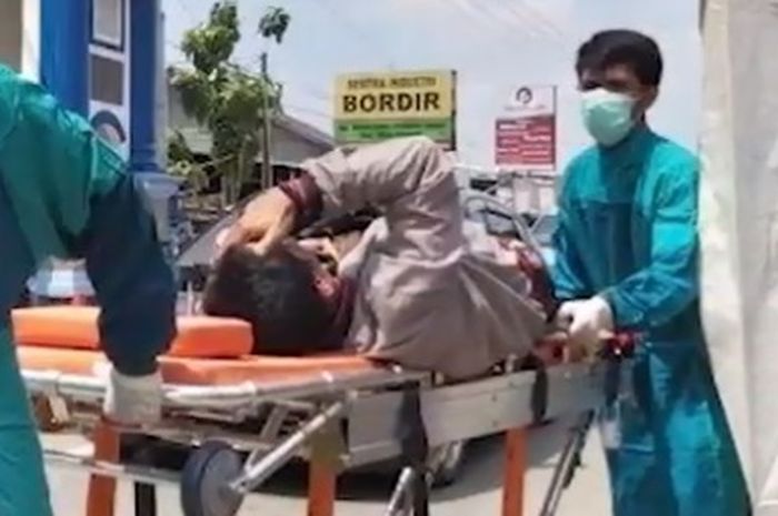 Gridmotor.id - Dua pengedara motor langsung dibawa ke rumah sakit seusai melalui posko pemeriksaan di Jalan Teuku Umar Kota Tegal, Jumat (3/4/2020).