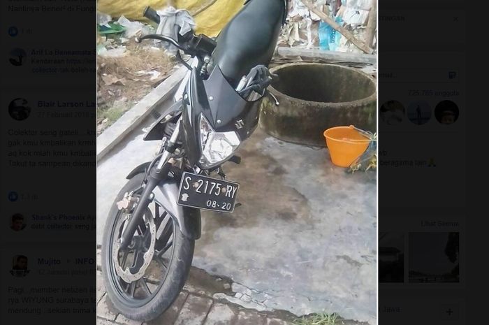 Motor Suzuki Satria F-150 miliknya yang dibeli seken dan cash alias sudah lunas dari orang lain diambil paksa oleh debt collector.