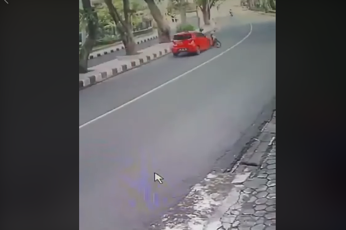 Seorang pengendara motor langsung terkapar setelah ditabrak mobil.