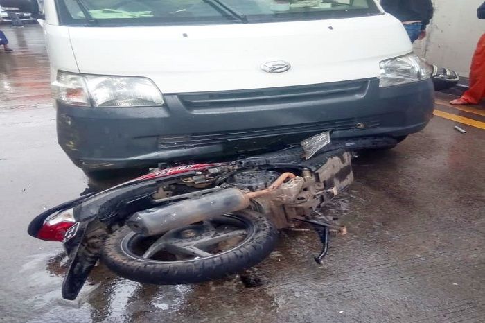 Akibat kecelakaan itu, pengendara motor itu langsung terkapar di jalan.