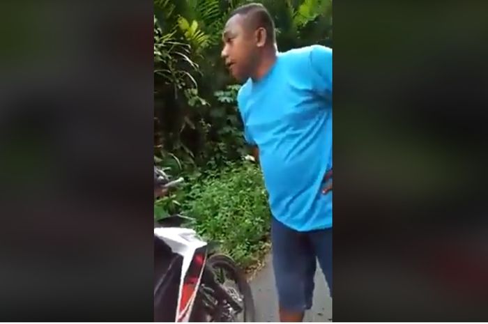 Tiba-tiba saja dalam video terlihat salah paham antara orang yang berdiri dengan biker yang sedang duduk di jok motor.