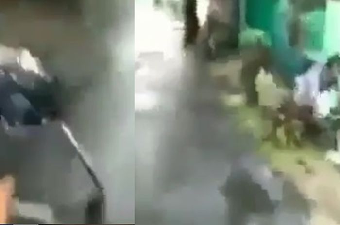 Kejadian ini akibat ulah tak beradab pengendara motor di belakang anak tersebut.