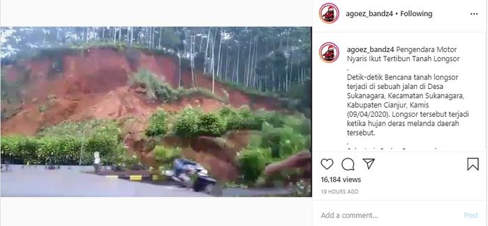Video yang merekam detik-detik bencana longsor ini diunggah dan viral di Instagram @agoez_bandz4 (09/04/2020)