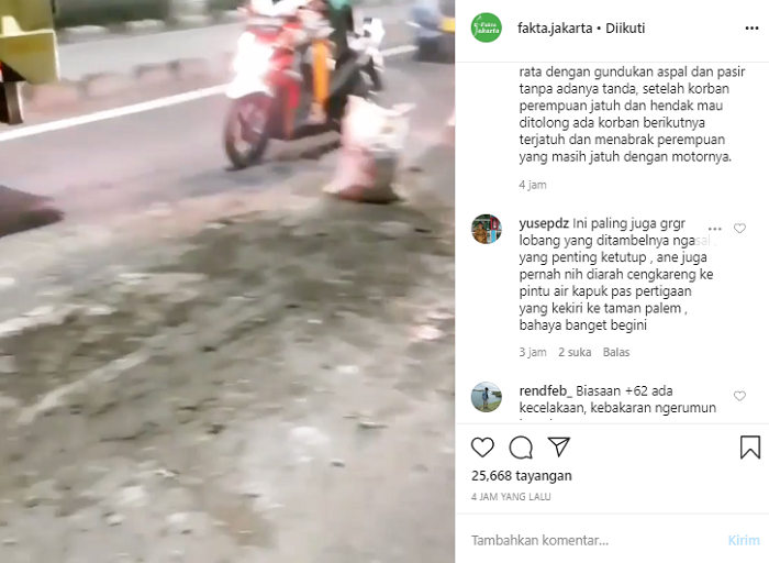 Melansir dari caption postingan, kecelaakaan itu terjadi di jalan Jatinegara arah Klender tepat di seberang kantor Imigrasi Jakarta Timur.