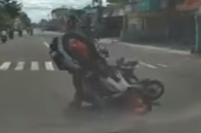Dimana terekam kecelakaan yang melibatkan dua pengendara motor.