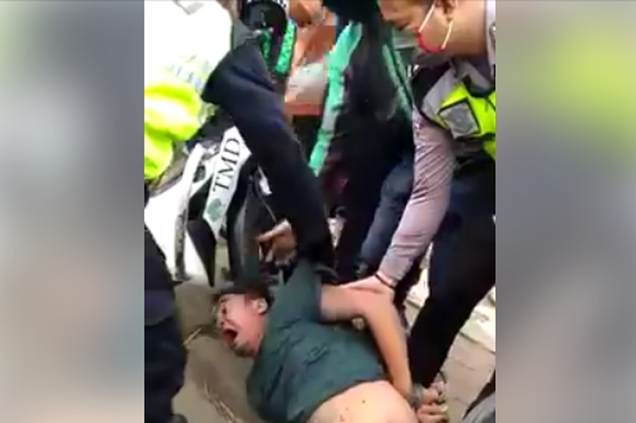 Tapi warga dan driver ojol yang geram terlihat ikut memukuli pria tersebut.