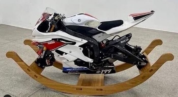 Yamaha YZF R1 terlihat dijadikan mainan anak-anak atau yang biasa disebut ayunan.
