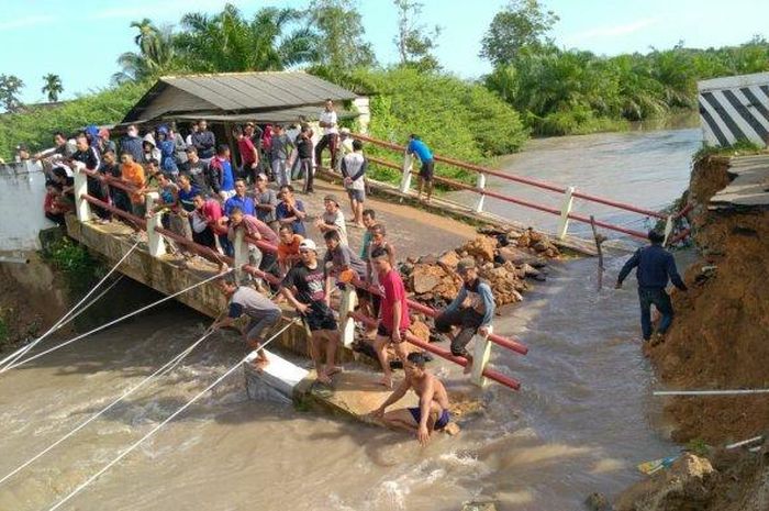 Gridmotor.id - Jembatan di Desa Delas Kecamatan Airgegas Kabupaten Bangka Selatan Provinsi Bangka Belitung ambruk.