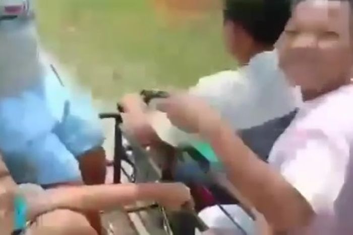 Terlihat jelas pula dalam video yang sengaja mereka rekam ini tidak ada satupun yang menggunakan helm.