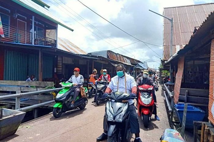 Gridmotor.id - Sambil konvoi naik motor listrik, Bupati Asmat, Elisa Kambu turun langsung sosialisasi cegah virus corona ke masyarakat.
