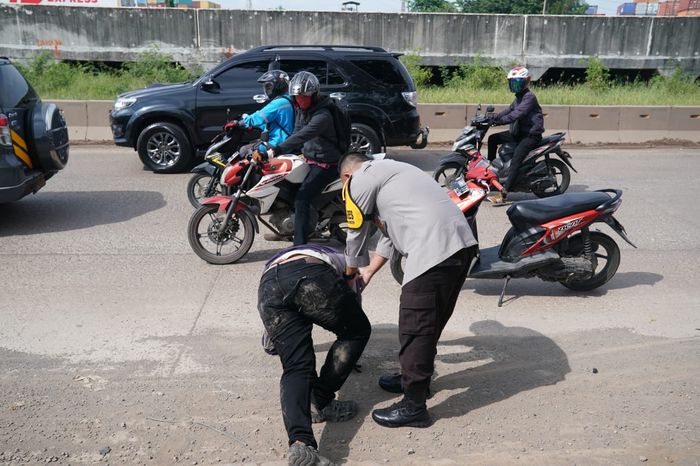 Gridmotor.id – Tidak memerintahkan anak buah, Kapolres Jakarta Utara langsung membantu biker yang kecelakaan.