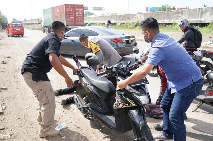Korban menggunakan motor matic Honda BeAT sepertinya tergelincir sendiri.