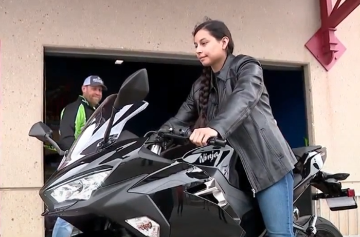 "Terima kasih buat Alamo Cycle Plex dan Kawasaki, motor ini bakal aku pakai sampai aku berhenti naik motor," sebut Mercedes.