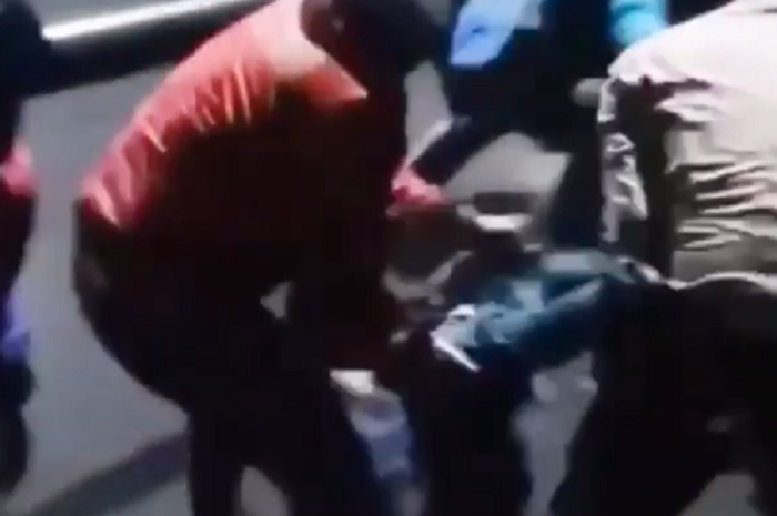 Pada video itu, terlihat geng motor menangkap pelaku begal.