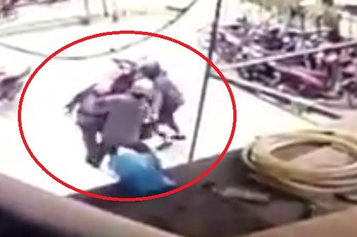 Sebelum terjadi rebutan senjata laras panjang, terlihat dari kamera CCVT yang mengarah ke parkiran motor.