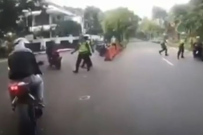 Tiba-tiba dihadapan mereka terdapat aparat kepolisian yang tengah menggelar razia PSBB.