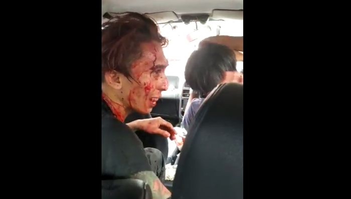Pria bertato ini masih terus dipukuli walau sudah menyembah kepada kerumunan masa.