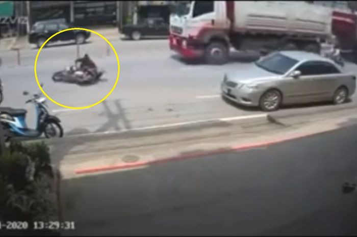 Gridmotor.id - Sungguh malang nasih yang dialami oleh bikier yang sedang mengendara motor bebek ini.