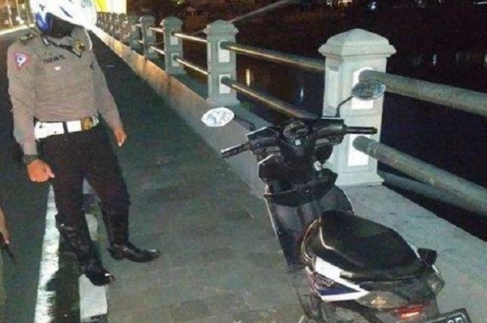 Honda BeAT misterius ditemukan Satpol PP kota Kediri, Jatim terparkir di trotoar jembatan Brawijaya, Kediri.