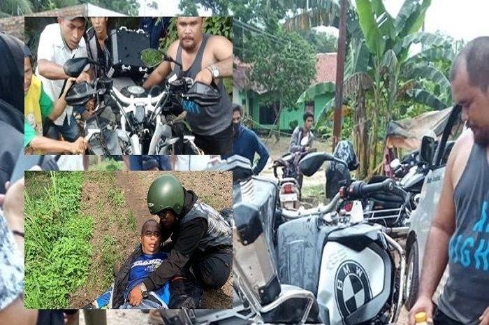 Ia pun terjatuh setelah motor gede miliknya menghantam lubang.