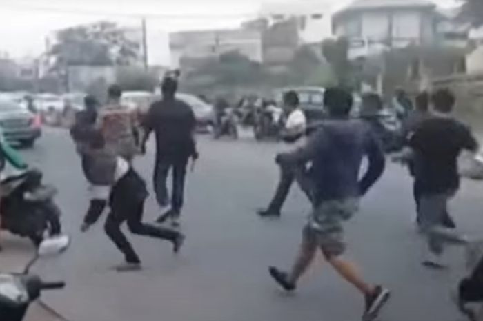 Karena terjadi baku hantam dan bikin kacau suasana jalanan, polisi yang datang mengeluarkan tembakan ke udara untuk meredam emosi masa.