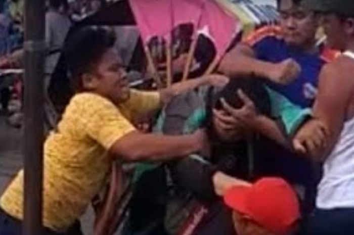 Driver ojol jadi bulan-bulanan sejumlah pemuda beringas tersebut.