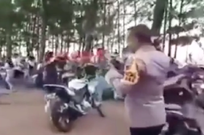 Saat polisi berjalan sambil mengimbau warga untuk membubarkan diri lewat pengeras suara, warga langsung pada kembali ke motornya masing-masing.