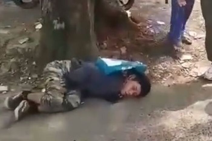 Terlihat dalam video pemuda tersebut terkapar dengan menahan sakit.