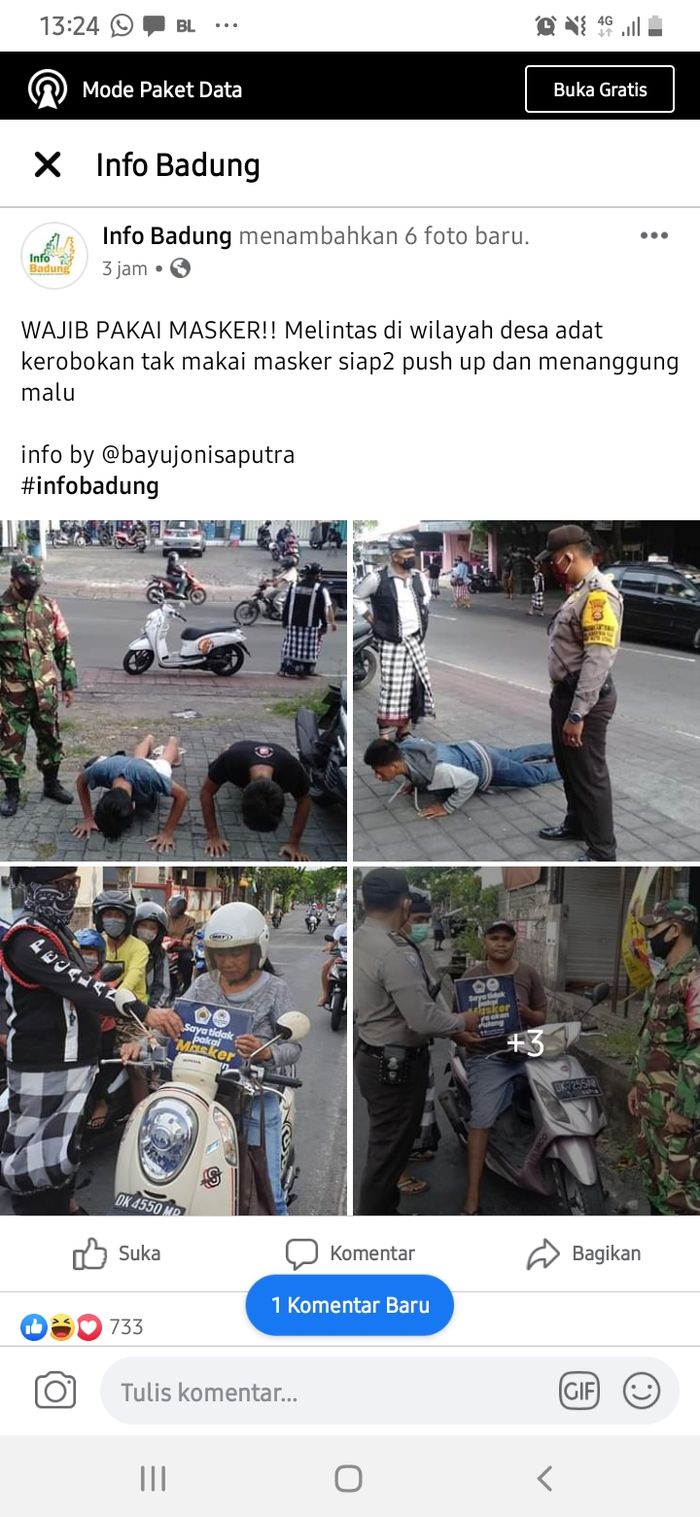 "Berikutnya kalau masih bandel dirotan aja pak polisi dan pak Pecalang, buat kebaikan kita bersama"