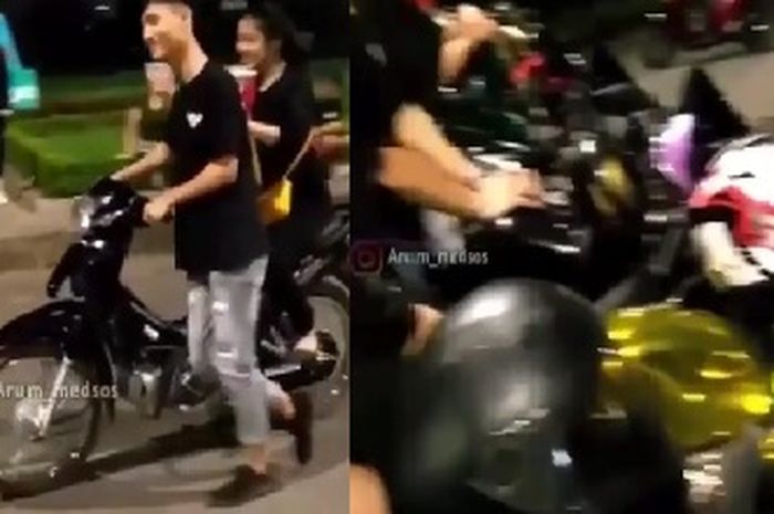 Terlihat dalam sebuah video seorang pemuda rela dorong motor Honda Supra yang mogok, tapi pemuda ini tak mau membiarkan pujaan hatinya capek berjalan dan membiarkan untuk tetap duduk di jok motor.