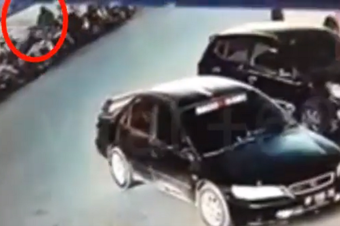 Terlihat pada video itu, sopir mobil keluar dari mobil dan berjalan kaki ke parkiran motor.