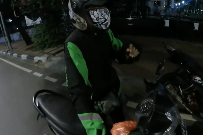 Pada video tersebut, terlihat seorang driver ojol yang tengah mendorong motornya di malam hari.