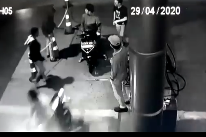 Video detik-detik kedatangan para remaja itu pun terekam oleh kamera CCTV pom bensin.
