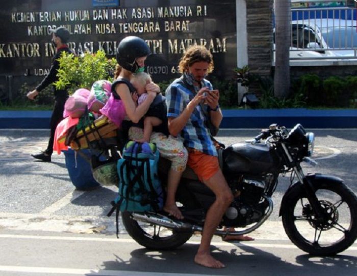 Pantauan Kompas.com, saat tiba di kantor Imigrasi Mataram, pasangan suami istri ini mengendarai sepeda motor yang telah dimodifikasi.
