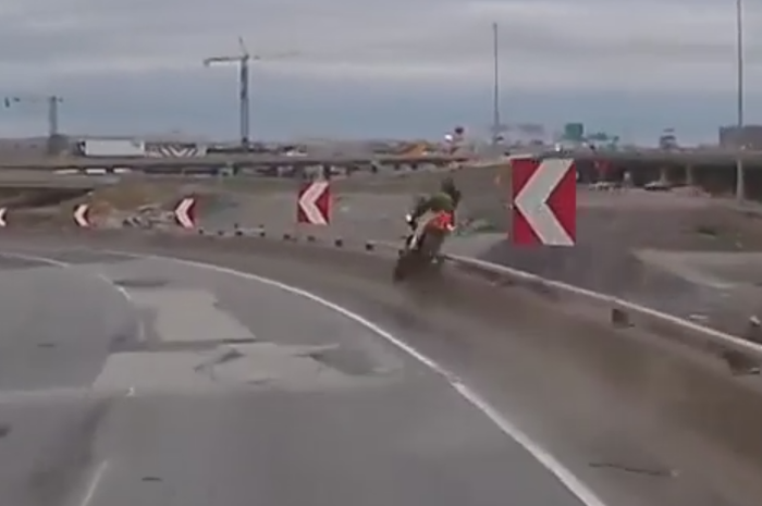 GridMotor.id - Video pemotor tabrakan dan jatuh dari jalan layang, lagi viral dibagikan para netizen.