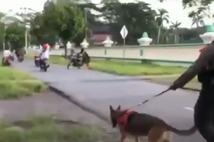 Gridmotor.id- Pembalap langsung kocar-kacir, Polisi kerahkan anjing pemburu bubarkan aksi balap liar.