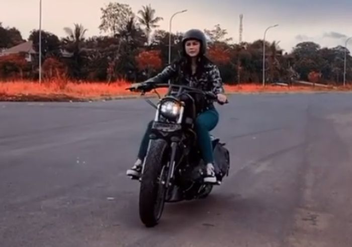 Dalam unggahannya, ia tampak menawan sambil mengendarai motor custom berjenis cafe racer.