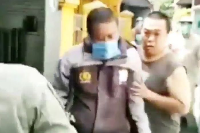 Salah satu kerabat AR protes kepada petugas yang menjemput AR.
