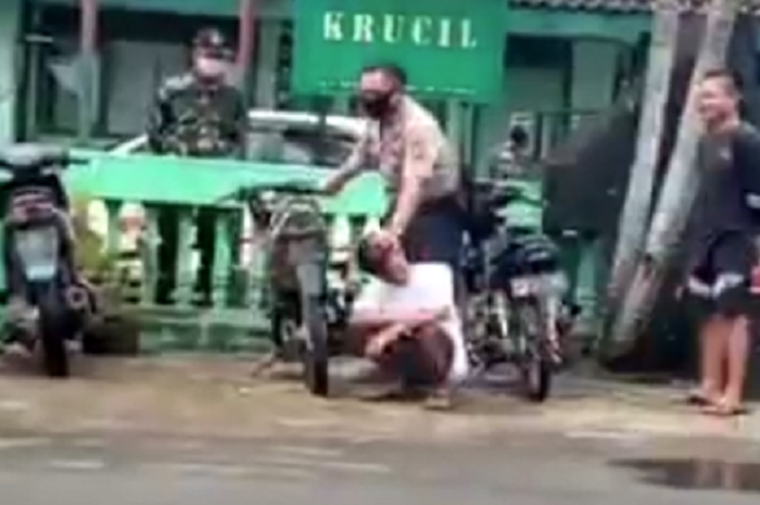 Melansir dari caption postingan, hukuman itu diberikan oleh anggota Polsek Krucil dan anggota Koramil 0820.