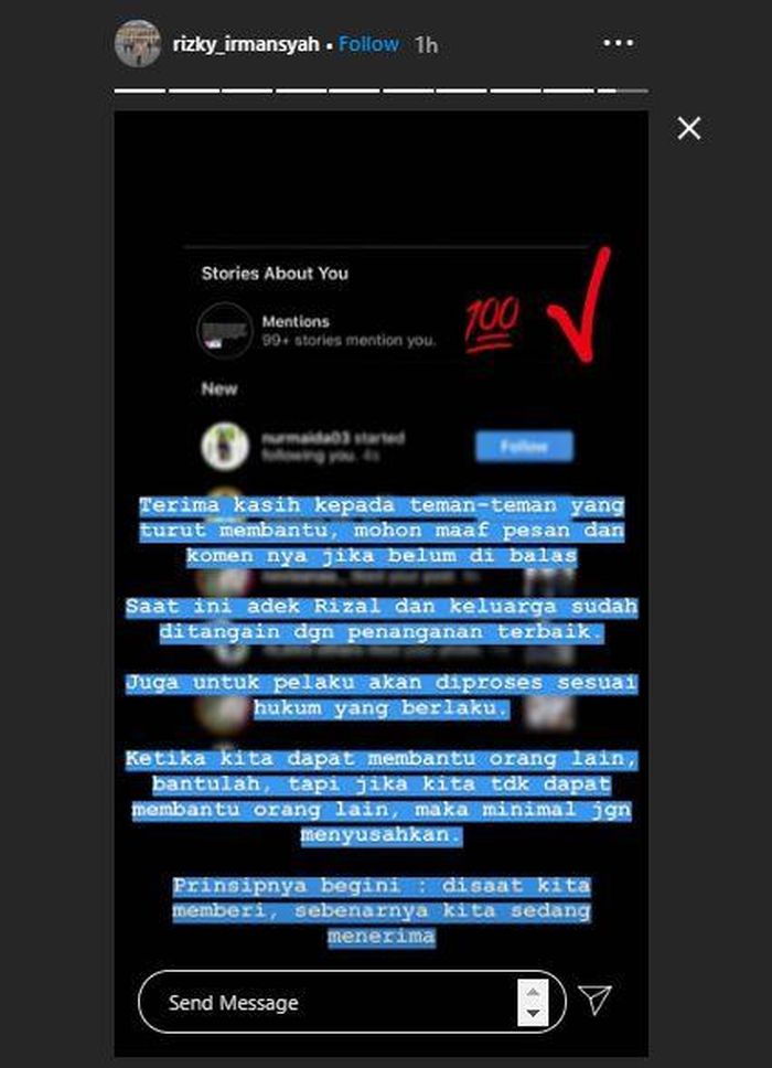 Rizky Irwansyah mendapat ucapan terima kasih dari warganet.