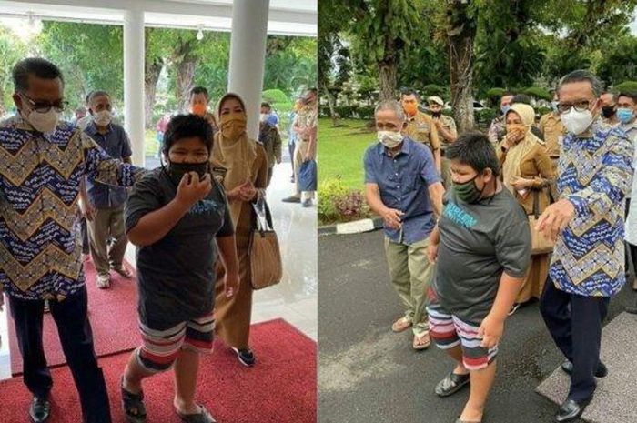 Gubernur Sulsel Nurdin Abdullah memberikan hadiah motor kepada Rizal, Bocah yang menjadi korban perundungan tersebut.