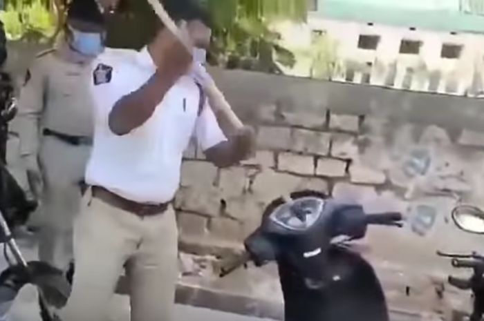 Gridmotor.id - Di India pemotor harus rela motornya dirusak petugas jika nekat melanggar aturan lockdown.