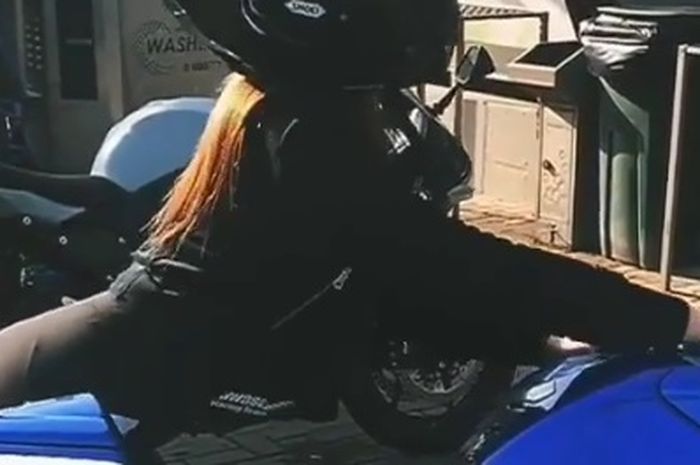 Gridmotor.id - Waduh bisa batal puasa nih, usir bosan saat WFH lady bikers ini elus-elus