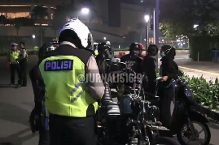 Pada video polisi membubarkan aksi balap liar di kawasan Bundaran Hotel Indonesia, Jakarta Pusat, pukul 02.00 wib, Minggu (17/5/2020) dinihari.